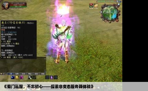 在当今的网络游戏市场中,私服作为游戏文化的一部分,受到了众多玩家的关注。尤其对于那些钟爱蜀门这款游戏的人来说,蜀门私服更是他们探讨与追求的一个方向。而在这些私服中,非变态服更是得到了玩家的普遍好评和认可。本文将详细探讨蜀门私服不变态服务器的特点、优势以及玩家如何选择和体验这样的服务器。蜀门私服不...